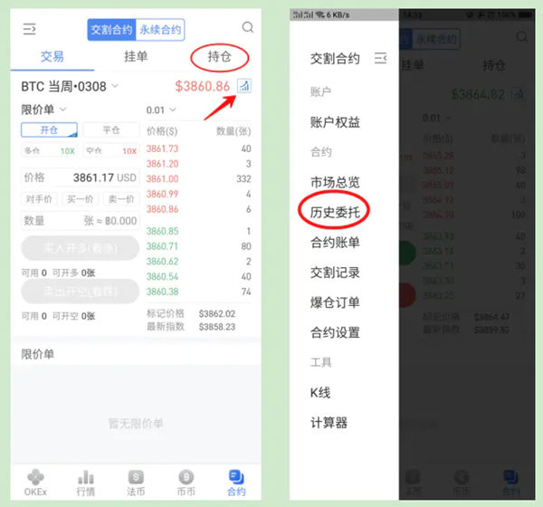 以OKEX交易所为例: