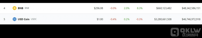 10月5日消息,据Coingecko最新数据显示,Binance原生Token BNB市值已突破480亿美元,截至目前达到48,342,586,151美元,超越USDC的46,746,972,918美元市值,成为当前市值第四大加密货币。