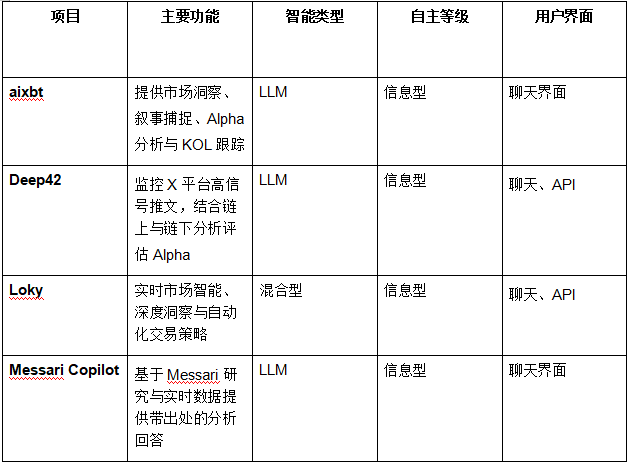 以下为当前已上线、具备资金管理能力并面向用户开放的 Agentic 项目列表。处于开发或内部测试阶段的项目不在列,同时,仅使用 LLM 作为界面、但需用户手动决策的产品也被排除,因此不少项目未被纳入本轮盘点。